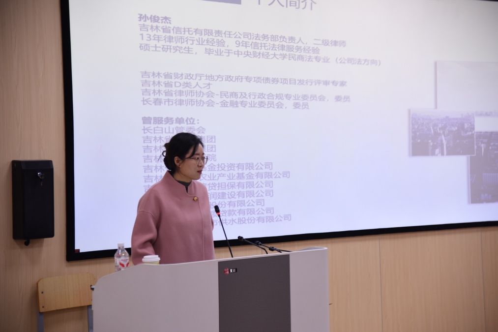 11月12日,法学院2025年“本科向导计划”暨本科实践教学协同育人系列讲座(二)成功举办。讲座邀请了吉林省信托有限责任公司法务部负责人孙俊杰担任主讲,法学院师生近百人参加,法律硕士教育中心办公室主任刘雯丽主持。