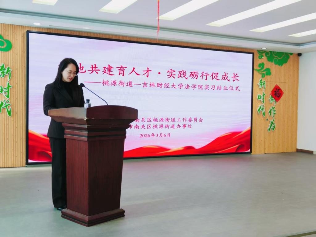 此次实习结业仪式的顺利举行,既是桃源街道与吉林财经大学法学院校地合作成果的集中展示,也是做好法学专业实践育人工作的重要举措。未来,吉林财经大学法学院将继续深化合作、协同育人,不断拓宽实践平台、完善育人机制,努力培养更多扎根基层、服务社会、德法兼修的高素质法治人才,为基层治理现代化与法治建设注入源源不断的青春力量。