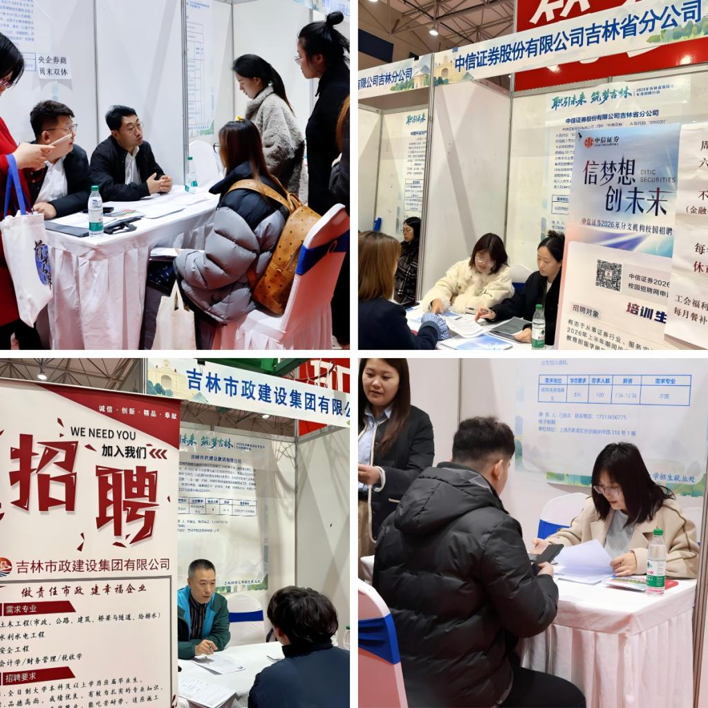 为充分发挥校园招聘活动的主渠道作用,本场双选会采取“线上+线下”相结合模式,招聘会现场设立多元服务专区,涵盖企业招聘展区、政策咨询区、基层项目推介区、征兵入伍政策咨询区、AI求职赋能体验区、就业指导区和“直播带岗”专区等,从求职材料完善、就业渠道拓展到政策答疑,多维度为毕业生提供就业服务。本次招聘会吸引了中国水利水电第一工程局有限公司、东北证券股份有限公司、中国人寿保险股份有限公司吉林省分公司、中国邮政集团有限公司吉林省分公司等324家用人单位参与,涵盖财会、金融、税务咨询、教育、法律、信息科技等多个领域,提供就业岗位近1.2万个,省内岗位7600余个,我校及十六所吉林省财经类院校创新发展联盟成员单位的3800余名毕业生参会。